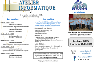 Nous vous expliquerons le programme 2025 d'initiation et de perfectionnement à l' informatiques (de janvier à décembre) avec ses nouveautés.